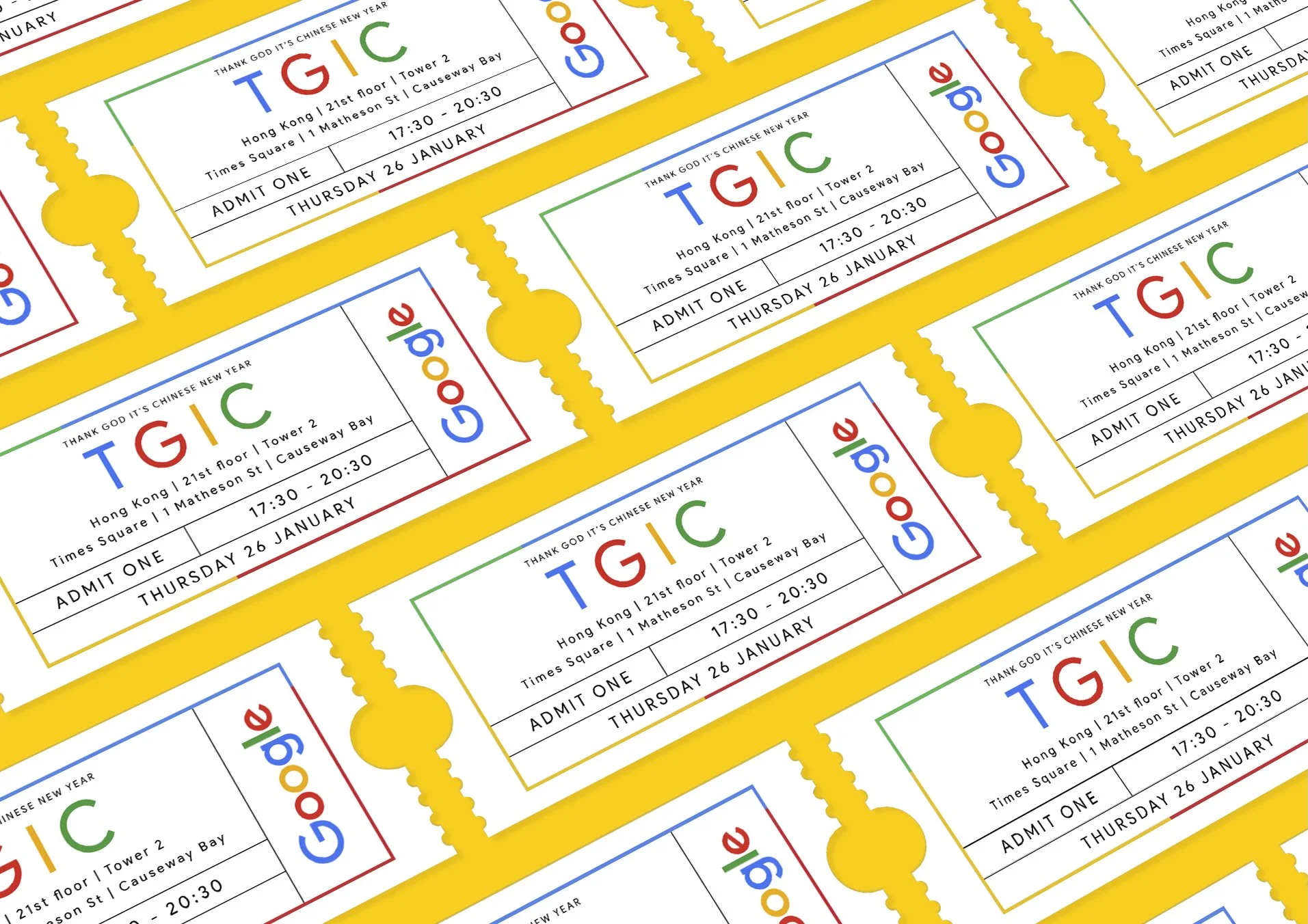 Invitation ticket design for Google’s TGIC (Thank God It’s Chinese New Year) Hong Kong event.